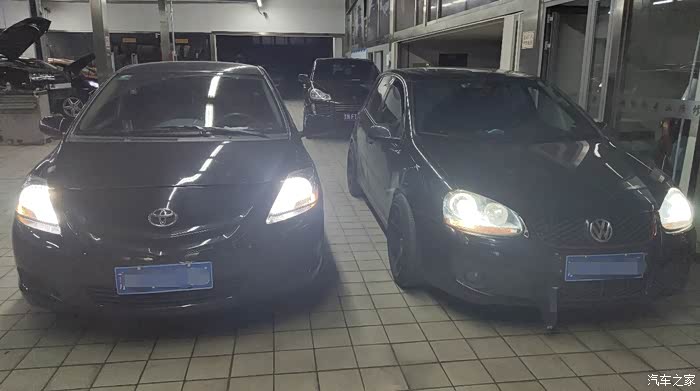 正面看,威驰LED,高尔夫氙灯,对比。