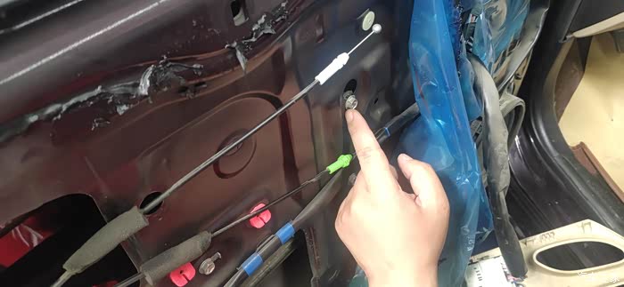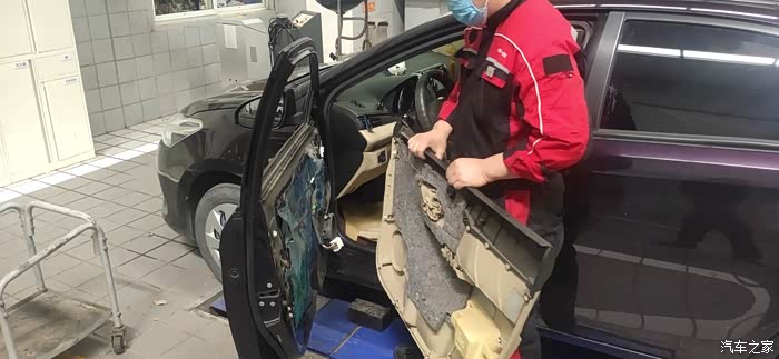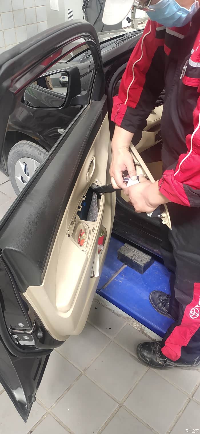 车开到车间,维修师傅开始认真的对我的威驰门板进行拆卸