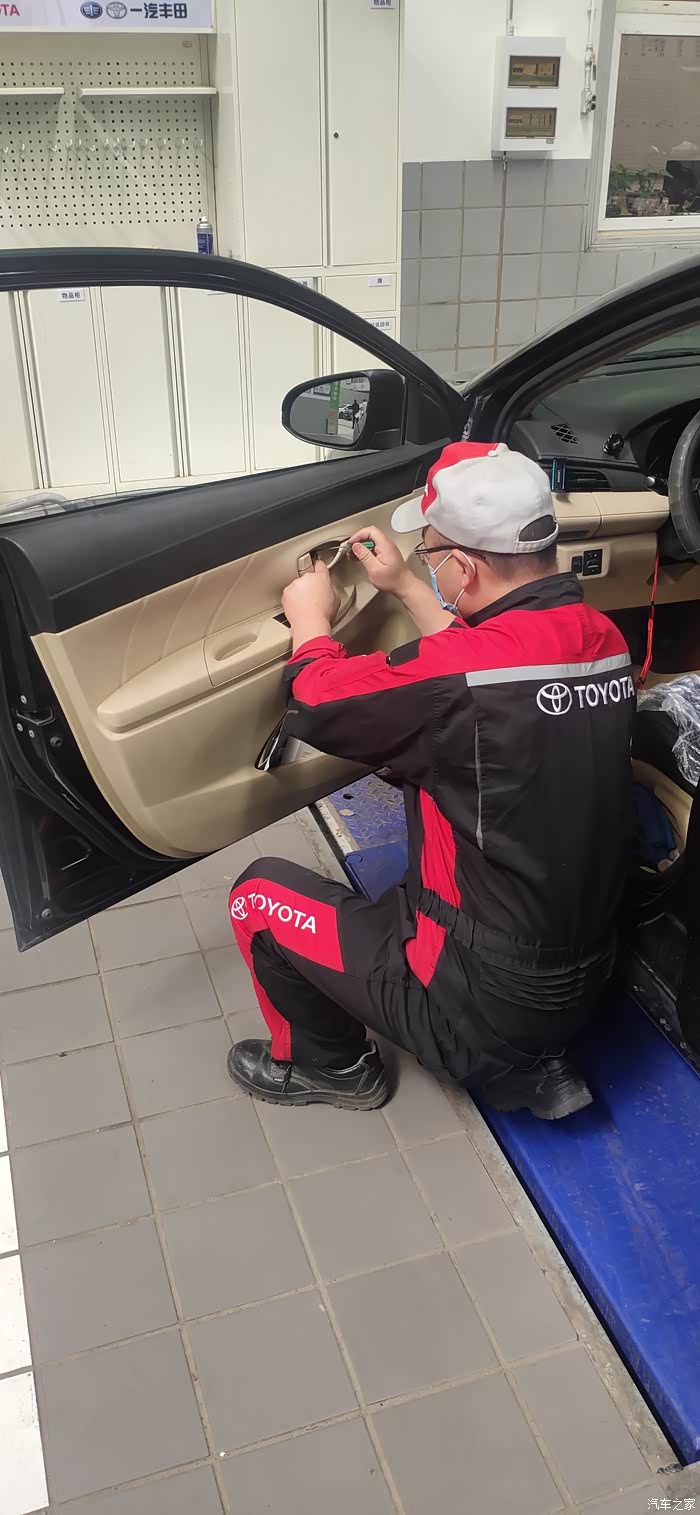 下午到了丰田售后,接待的的小伙儿认真的给我的车门玻璃检查一下,确定玻璃异响确实不小,估计是里面螺丝松了 ,提前跟我说,如果小问题免费给我解决一下 ,要是东西坏了,需要更换提前再跟我说