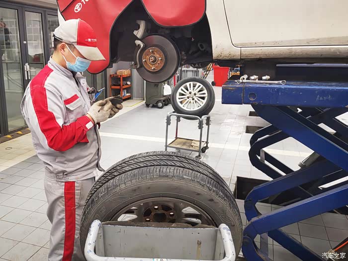师傅再检查刹车片厚度