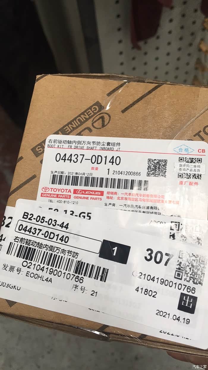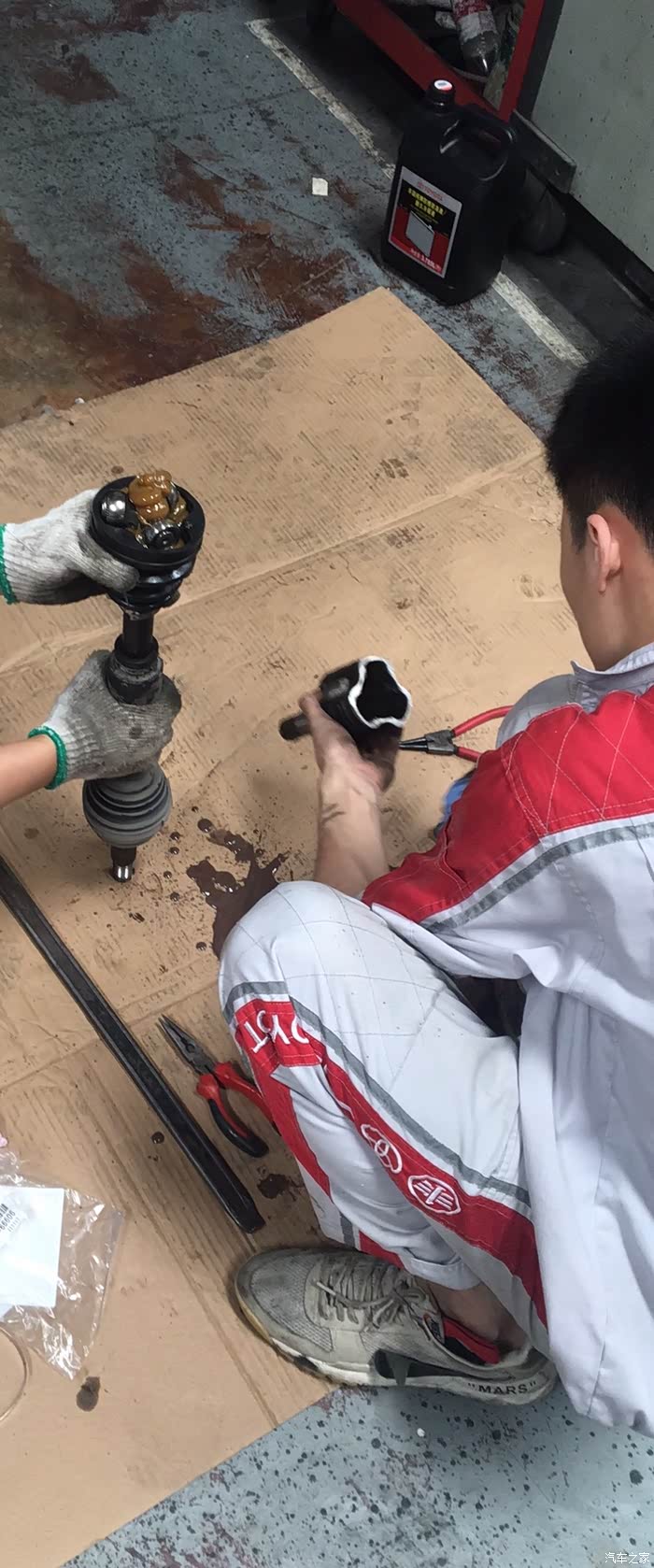 3月15号左右,发现前轮左半轴防尘套渗油,后避震渗油,质保期内,免费保修,等配件等了一个月左右,今天到货