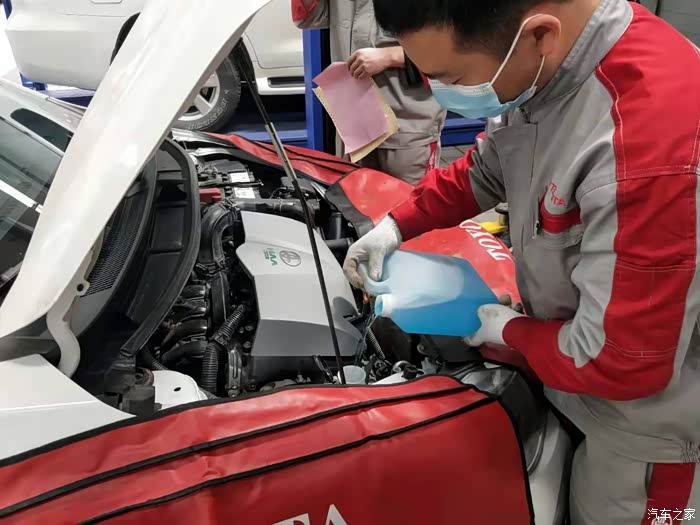 买保险送了几次玻璃水儿,这次正好水壶也空了,师傅把玻璃水给加上。