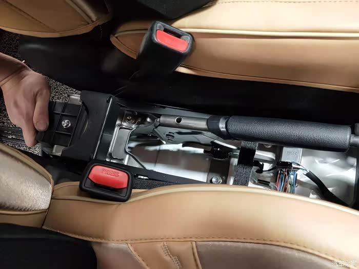 检查手刹确实不正常,师傅说手刹行程稍微长一些,可以从后车轮上调一下,我这个拉的太高了,要拆换挡杆饰板,