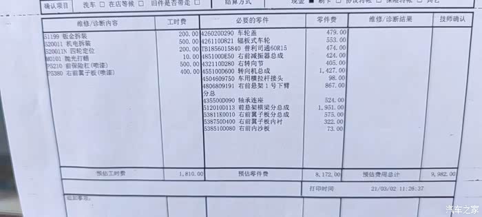 事故维修单先奉上 小一万的费用不心疼是假的