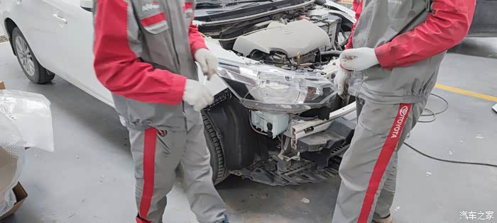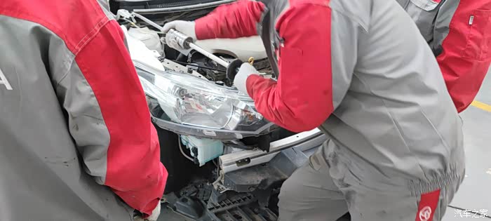 周六在小区门口倒车准备出去玩,奈何技术不到家,不小心跟前面的车追尾了。。。小威前脸有明显受伤的痕迹。还吓我一跳啊,不明所以的我害怕别是大问题就赶快来4S店啦~后来师傅检查确实也没有太大问题,发动机和水箱什么的也都没有事,车升起来看看底盘儿也没啥问题,拆开之后检查左右翼子板、前保险杠需要喷漆,前格栅跟大灯有点问题。师傅挺专业的,做完之后我基本上是看不出什么色差的,后期就算有什么问题也能找4s店售后。