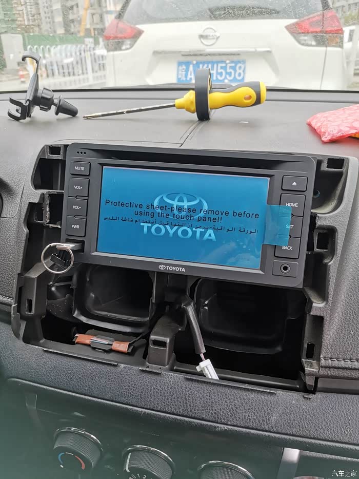 东西都到了,然后开整,其实挺简单的,把原车机外面的壳子,拔出来,里面螺丝下了,就可以了,插头插上就可以了