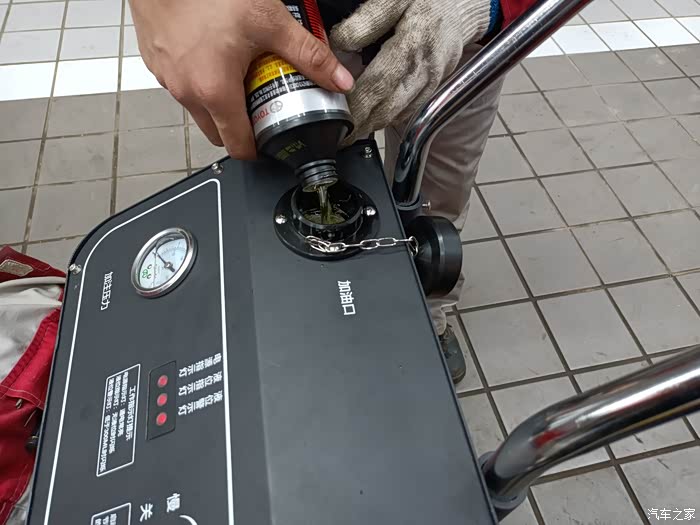 换刹车油的原理就是用机器产生的压力,把新油往油壶里压,然后把老的油从油管里憋出来