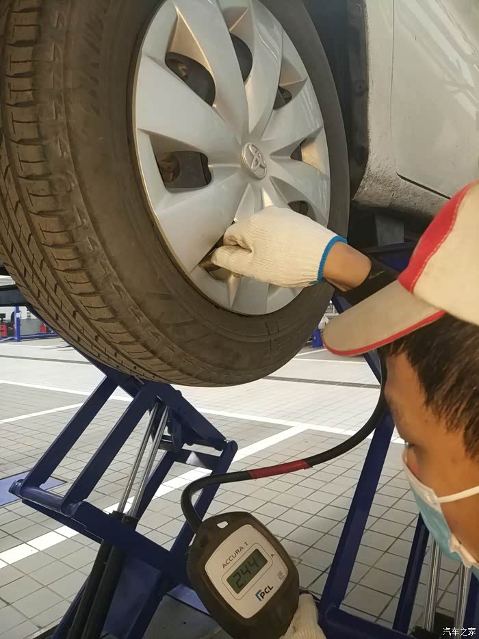 测一下轮胎气压,小V的标准气压是前后2.2,因为是热胎的缘故,高于2.2是正常的。