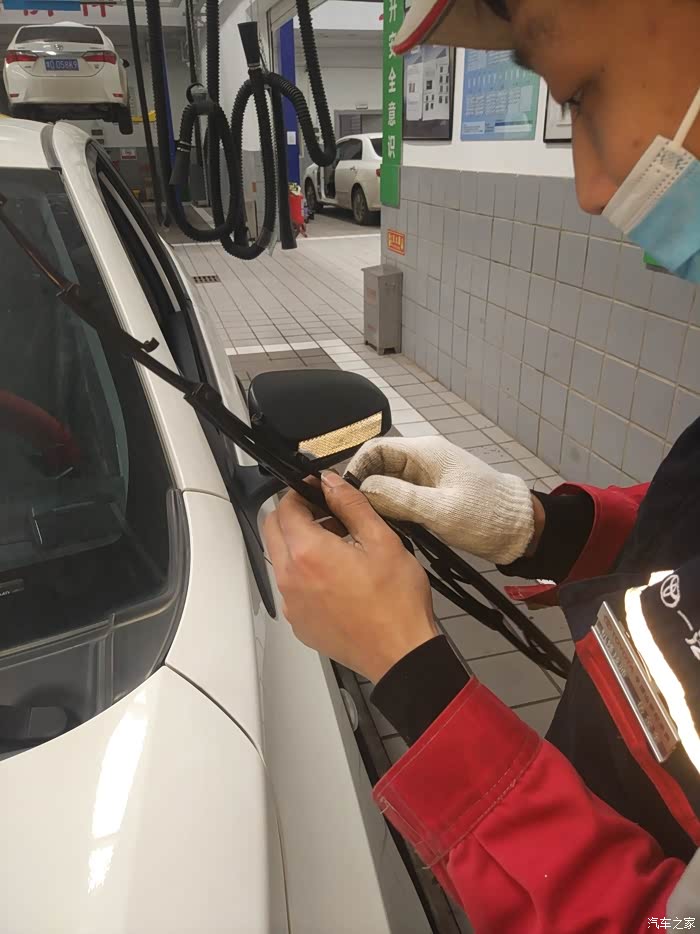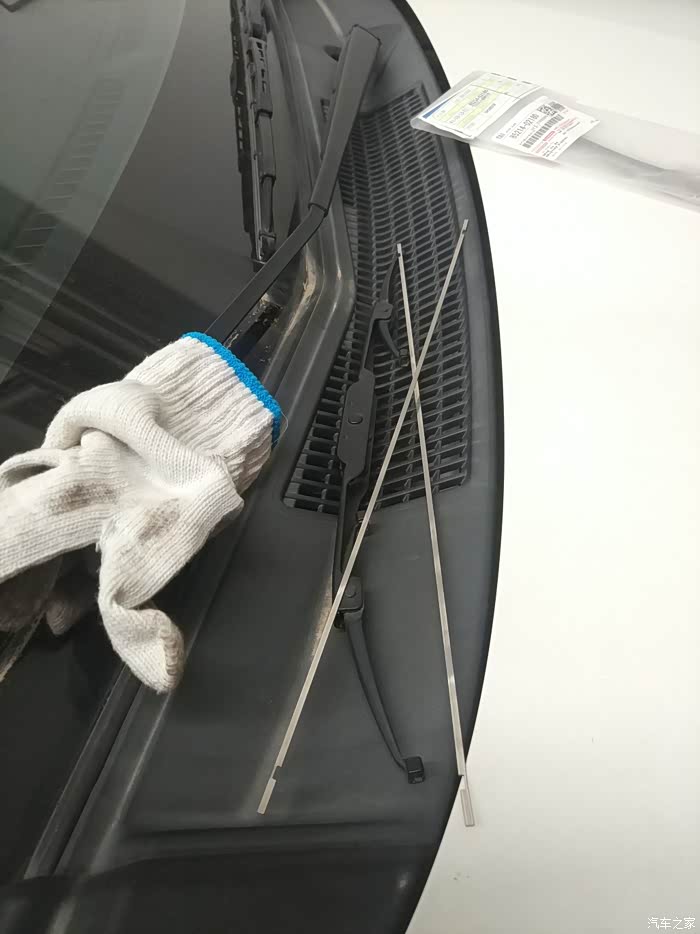 一般更换雨刮片都是整体更换,但是丰田设计的是更换雨刮胶条,因为一般情况下,雨刮片的骨架是不会坏的,损坏的只能是橡胶,把雨刮片从拨杆上面取下来。