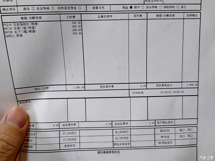 最近下了几天淅淅沥沥的小雨,这个季节忽冷忽热的,还是有个车遮遮风挡个雨来的舒服和自在。本以为自己已经是个成熟的老司机了,谁知道老司机也有失手的时候。。。正好前几天休息回老家,路上比较泥泞,雨天出行,视线都比较模糊了,一个不注意就蹭到了路两边的石墩上。随即我就下车查看卡卡的伤势如何。还好没有撞到哪里,只是车身四周的话刮花了。后来到了4S店初步看了一下,就是需要做喷漆,更换和维修的地方倒是没有。这也算是不幸中的万幸吧。喷漆需要做个两天,好歹也是新车刚用几个月,心里说不心疼是假的。还好时间短也不怎么耽误事,店里的师傅也安慰了几句,只是这两天就要体验骑车上下班的日子了。这不店里前两天就给我打电话,说是可以去提车了。修复之后看不出有明显的色差。就是小小心疼了一下我的人民币,不过人家也是透明的价格,修复之后看起来也像崭新的一样。从拆装到喷漆也都流程化的操作。效率的话也还可以。这次的维修也就到这里啦,以后还是得小心为妙!