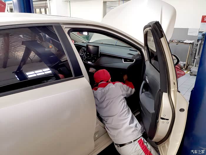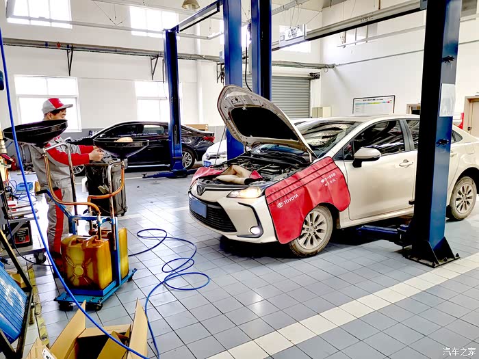 到了首保的时候就决定把车开到4S店里面进行保养。虽然开车习惯比较好,但是还是担心会有刮蹭到的情况,也怕底盘会有受伤,正好这次也让师傅帮我看一下。排了有一会儿才到我,接待的小伙子就开始登记我的车牌信息,然后确定了今天的保养项目。都差不多了之后就把小卡开到车间去了