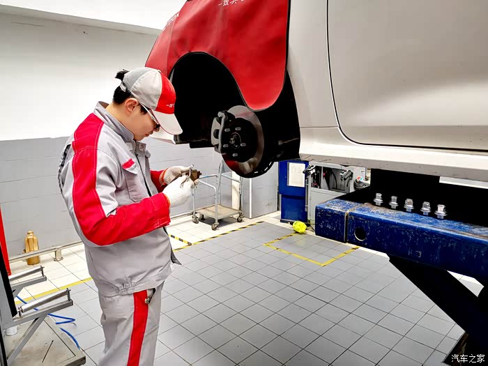 再者就是灯光胎压等等的检查,流程化的操作正规且出效率。升起来检查底盘的功夫就开始检查一下轮胎补补胎压,一点也不耽误时间。细心的拿小尺量了量轮胎的厚度,就连轮胎缝里面卡的小石子也不放过。真的是步步到位。在4S店做检查和保养图的就是正规和专业的品质吧。几十分钟的功夫,我的小白卡就焕然一新了。嘿嘿洗的干干净净的小白卡更好看啦!