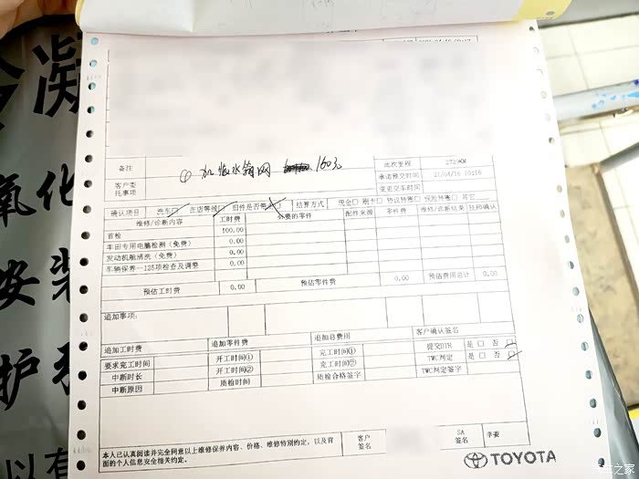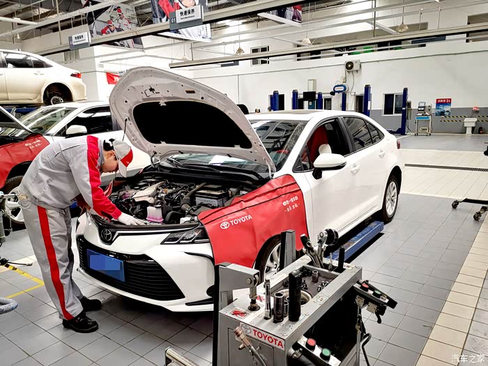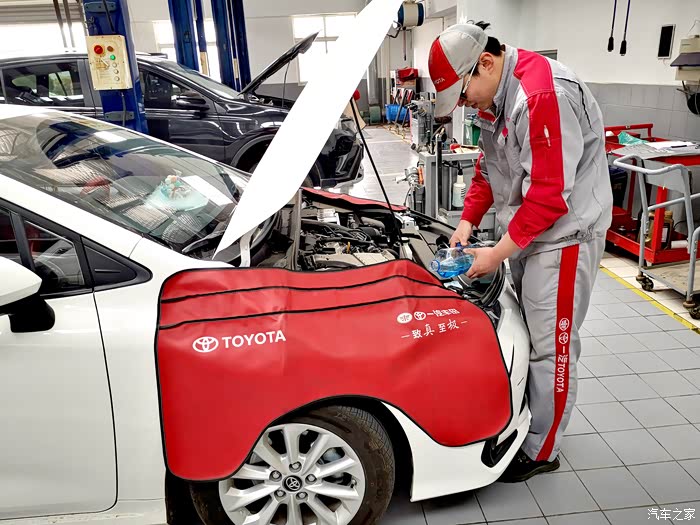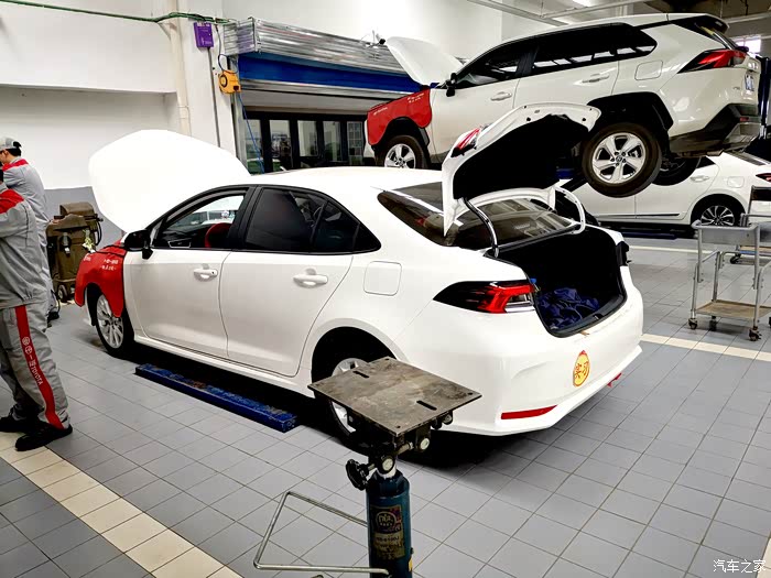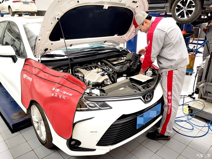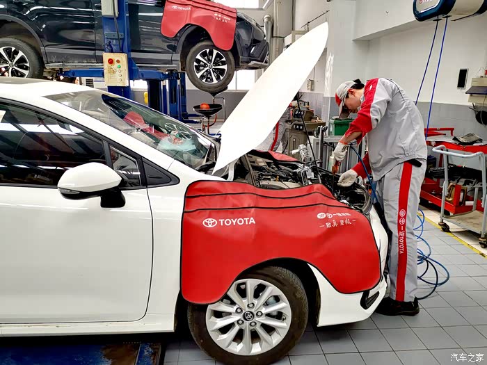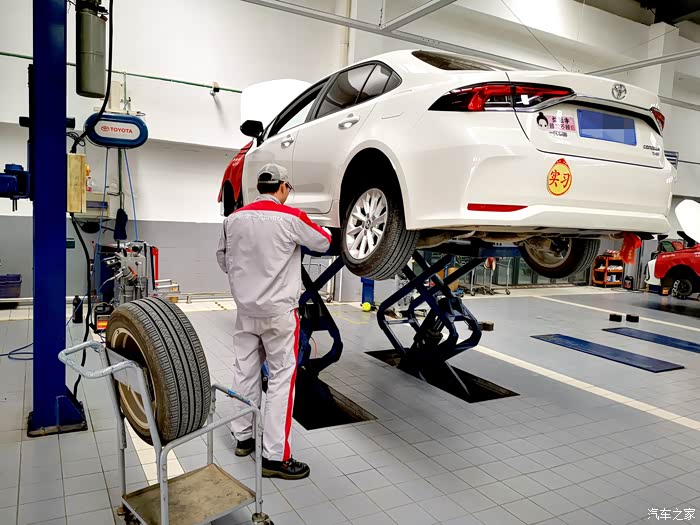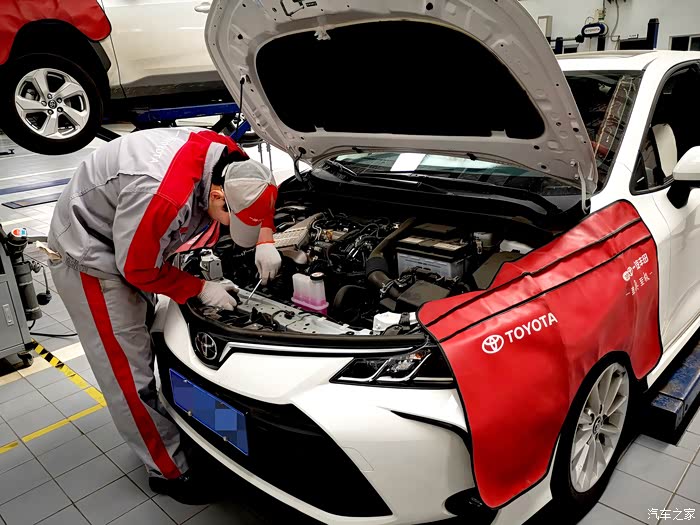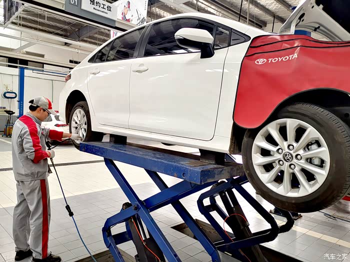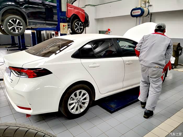 小白卡三个多月了,正好也迎来了它的首次检查。首检应该是在三个月或者五千公里进行的。看保养手册上,保养是按照半年或者是1万公里的周期来算呢,感觉卡罗拉这点还是比较实在,不管是哪一种周期都很好应对。提前跟客服约好时间,到的时候前台的服务顾问直接就来接待我了。登记了一下车辆信息,给车子铺上一次性的隔离罩,就开去车间作业了。