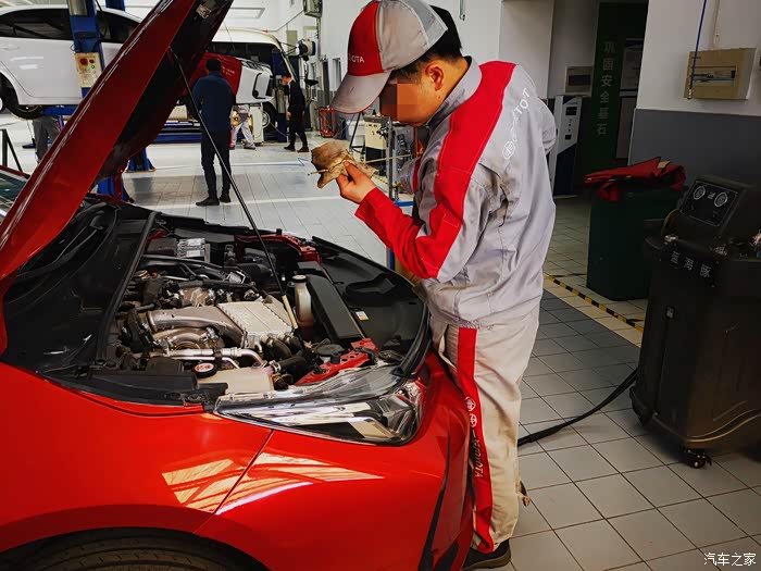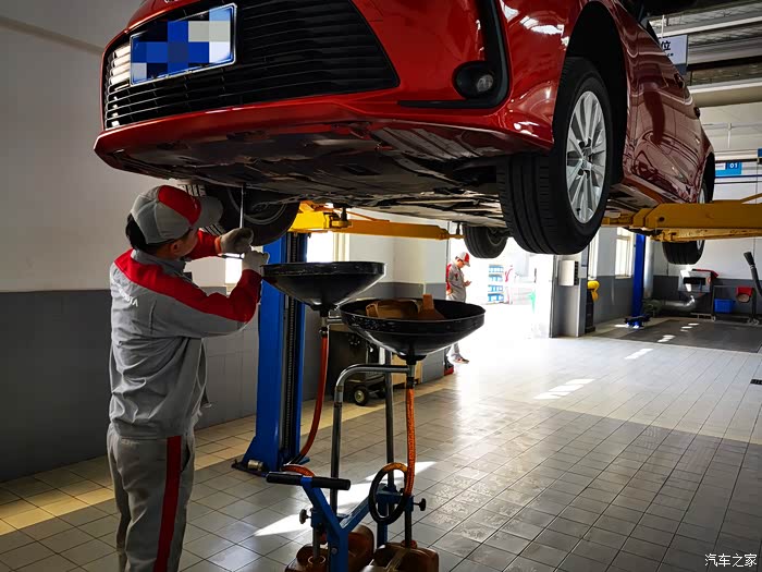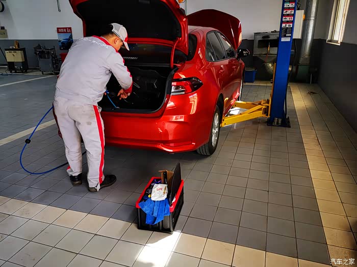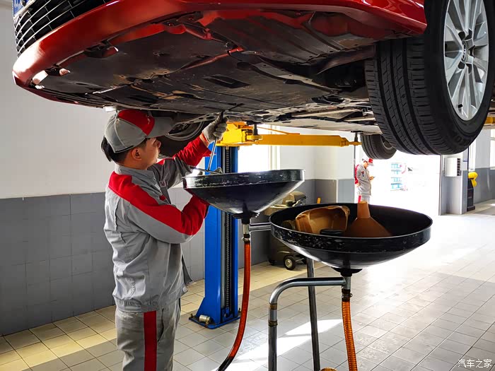 4s店有专人电话提醒这点还是蛮好的,到店很快就有人接待,登记里程还有车牌号,做了一次性防护,有空位了就可以直接开始保养流程,还和上次保养一样,空调滤清,机油、机滤的更换还有一系列灯光,电瓶,胎压,刹车片,雨刷,门锁的检查,