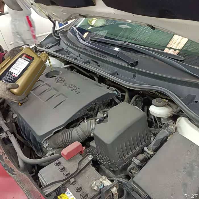 添加机油,这个小车使用4升的机油,一桶正好,从买车到现在,也是一直使用的这款机油,丰田纯牌:SN OW20全合成机油,这款机油真蛮不错的,非常的适合小卡。