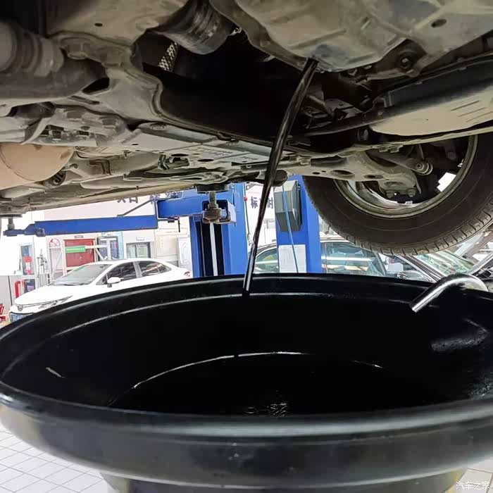维修师傅已经开始放油了,给流淌的机油来张特写,跑了整整一万公里的机油。