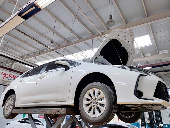 这次到了小卡保养的时间。知不觉就到了新的保养周期了。跟客服做好预约之后,按照预约时间就过去了。给我的车子先做个全车检查。检查机油玻璃水,雨刮水的水位这些。空气滤芯和空调滤芯也清理干净。把车子升起来检查底盘,再放掉废油前面机舱里面加入新的机油。再进行灯光检查,胎压检查,刹车片检查等等