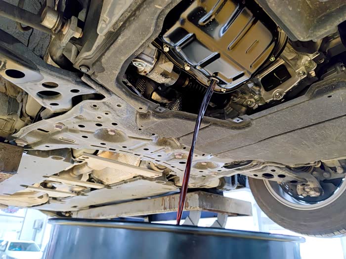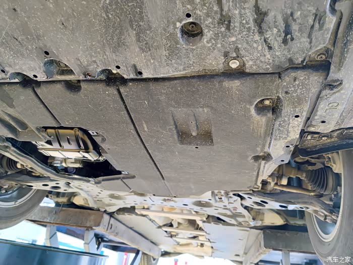 平整的底盘,师傅只把需要换机滤的位置拆一部分下来