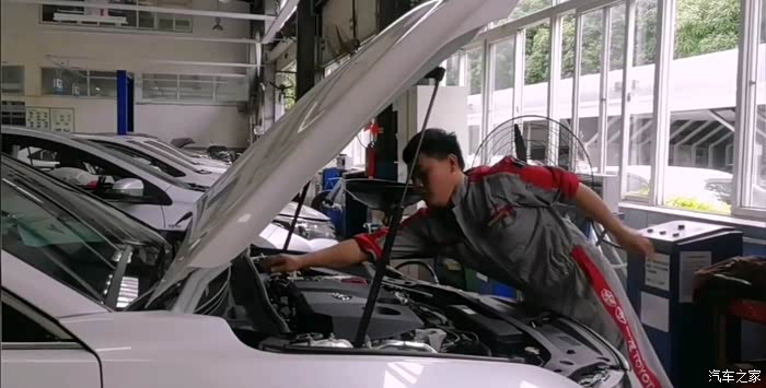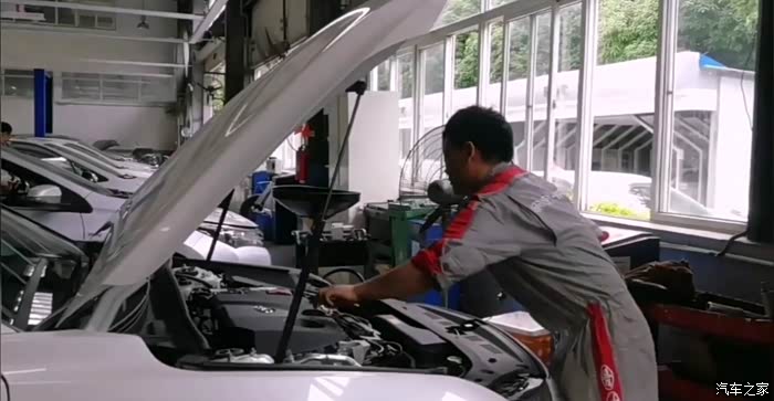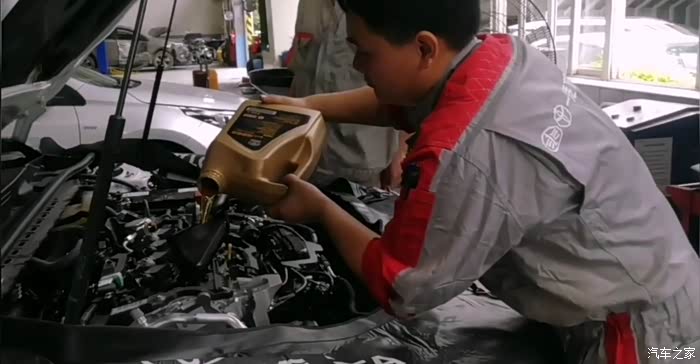 把新的机油加注进去,然后再进行简单的查一下,所有的保养就差不多了,我来之前师傅就把一些基本的细节检查了,基本上就可以了。