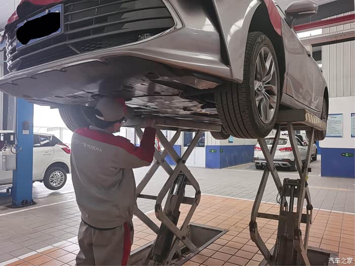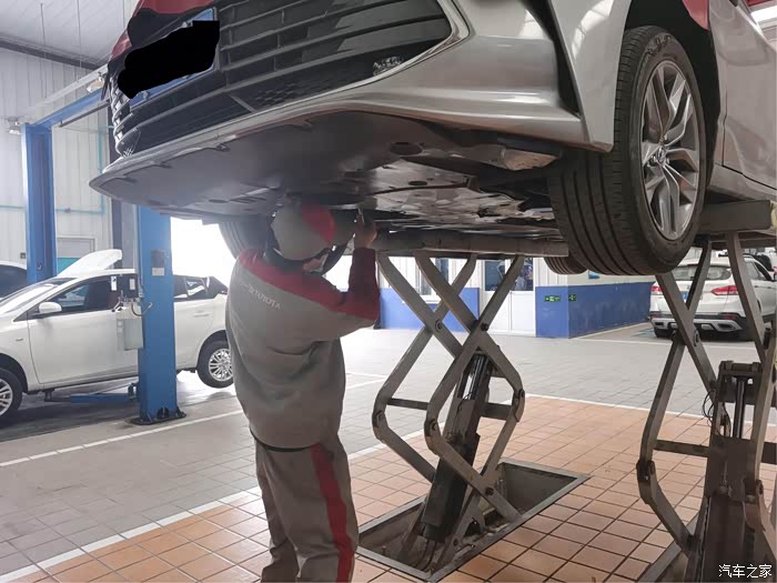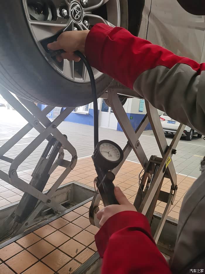 在这期间,维修师傅给我检查车子底盘,检查下面的每一处螺丝,非常到位,非常仔细,还给我查看轮胎,清理轮胎上面的石子,再我补足轮胎的胎压,这时候机油已经放干净了,换上新的机油滤芯,把车子降下来,然后倒入专用的机油,查看一下达到了要求液面,再给检查了一下线路和电压,这就基本上完事了。