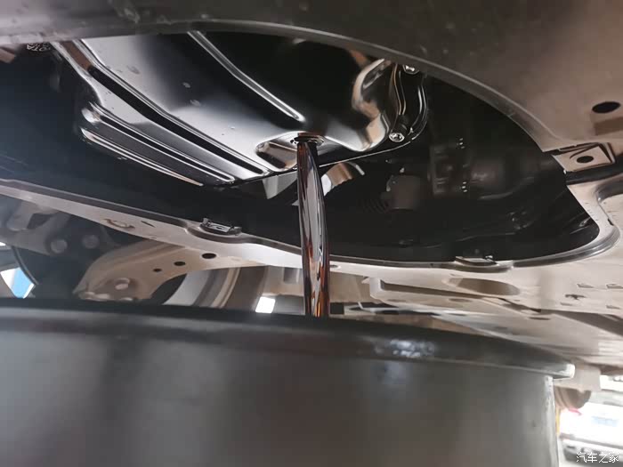 然后将车子升起来,拆掉护板,将机油的专门的收集桶放在下面,让机油自己流干净