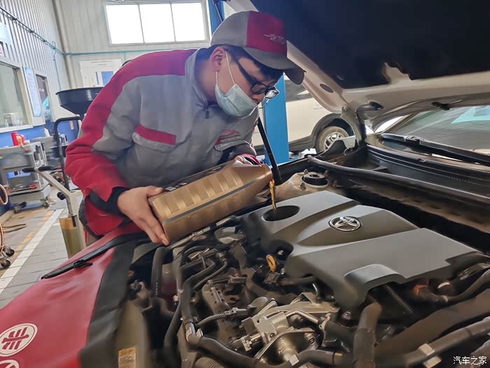 换上新的机油滤芯,再把护板装好之后就把车子放下来,把专用的纯牌机油换上,价差液面达到要求之后,检查线路和电压一切正常之后,打火,看了一下行车电脑一切正常,最后还把轮胎的螺丝检查一遍看有没有松动的,真的非常仔细。