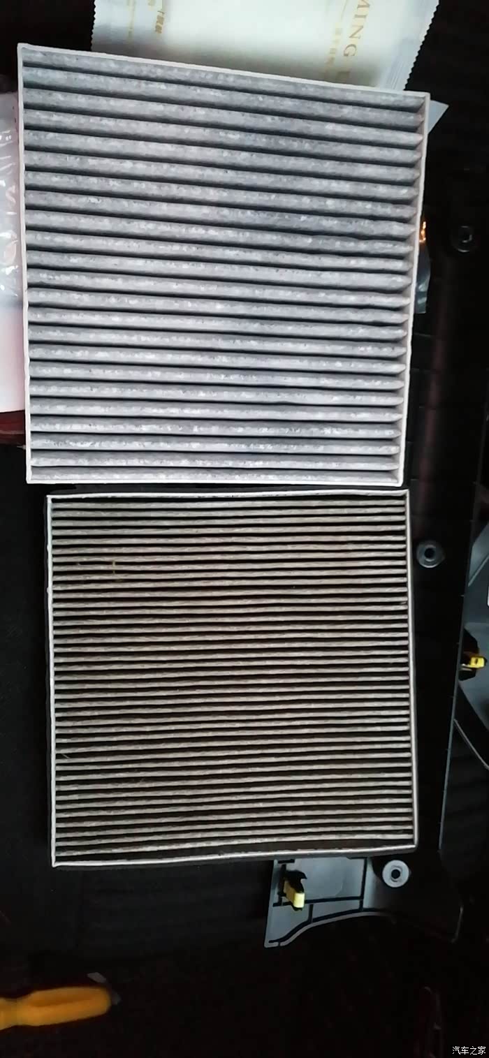 旧滤芯是有点脏了,新空调滤看着还有点稀,不过也差不多,大小都一样。看好反正,把新的插进去就完事了。头一次换有点慢,万事开头难,以后再换就快了,也熟练了,感谢莱芜车友。