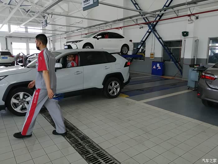 开进车间等着保养,今天车还挺多,得排队。