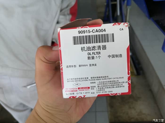换上的新机滤的包装