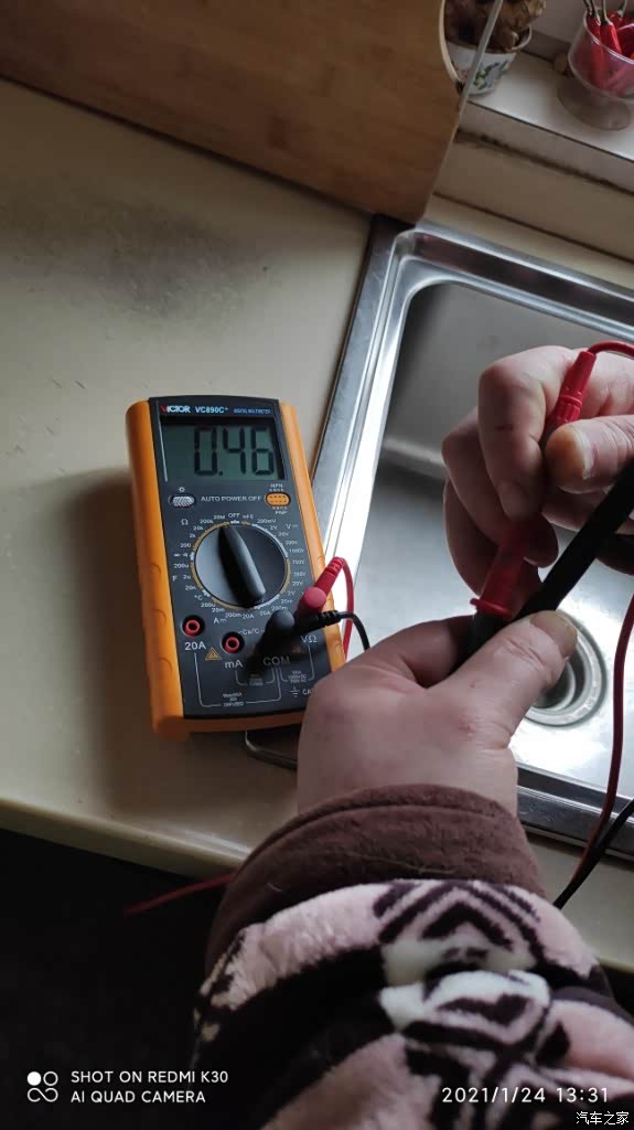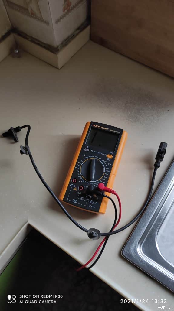 既然说我左后探头不好,就拆下来用万用表测。打在电阻档20M档位上