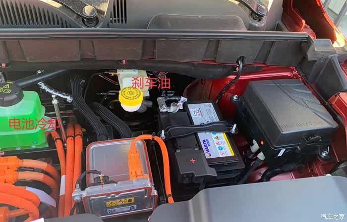 中间的是PTC的冷却液罐子右侧这个是刹车油电池下侧改版那还有个储存罐