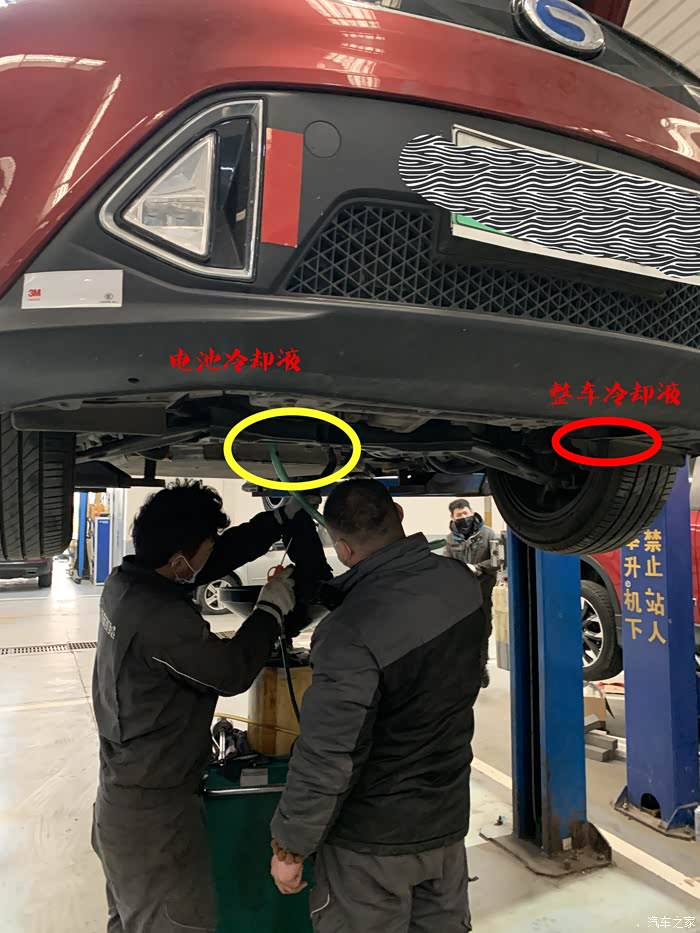 这是动力电池冷却液的管子有两根 拔掉一根找个桶接着下面不留的上面需要加压顶出来