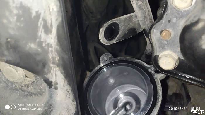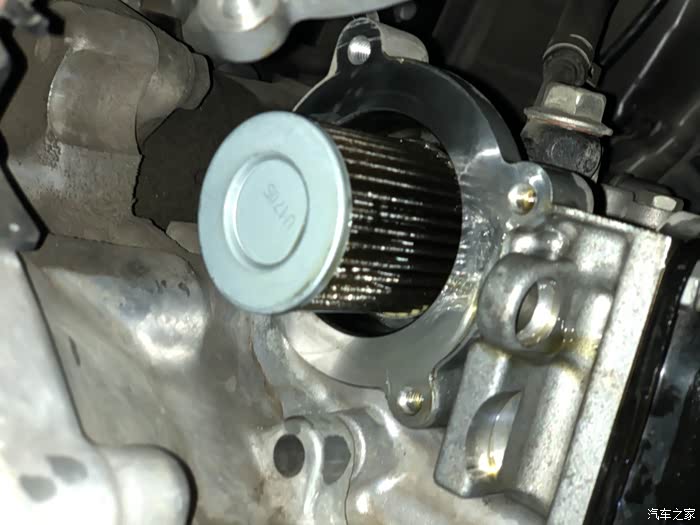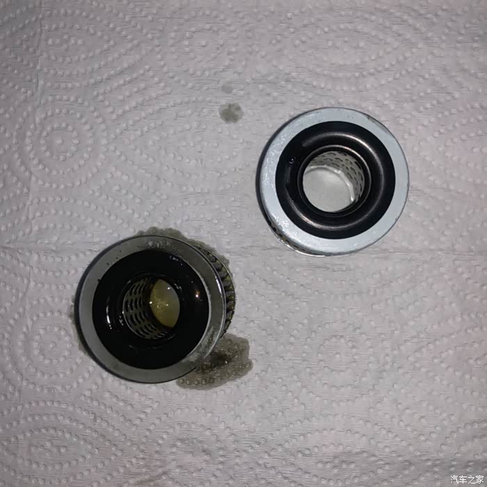 第二次才换油滤。盖子翻过来,可以看到密封圈,装的时候要注意,不要让它从槽里脱出来。