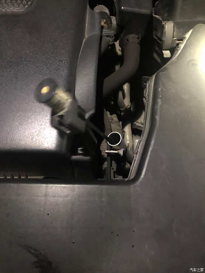 盖子终于可以拆出来了!这个油是半新半旧的混合油,颜色类似橄榄油,是前不久换了4L油,车开了一周后再换第二桶4L油时拍的。