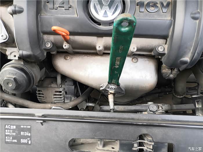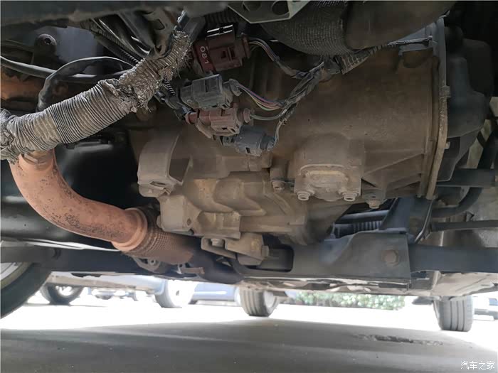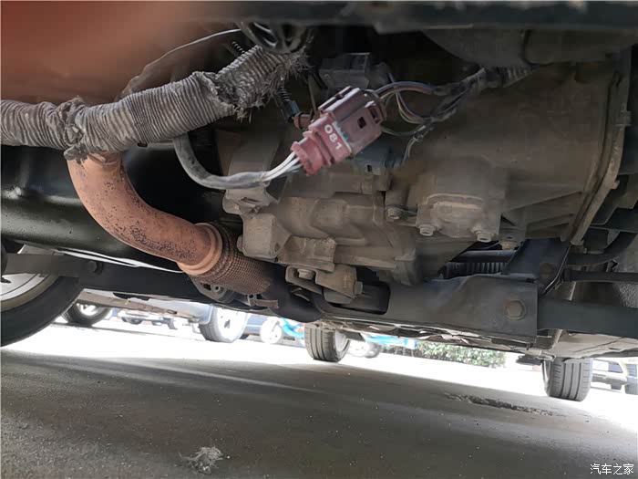 插头在变速箱支架上,Polo底盘比较低,人得趴下去,才能找到。
