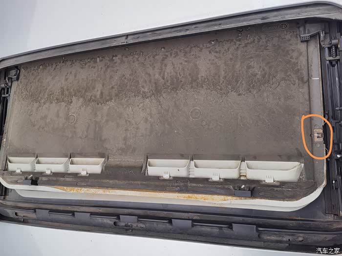 这下面就来和大家分享一下,第一步:拆卸天窗,先通电,把天窗设置到后翘的位置,如下图