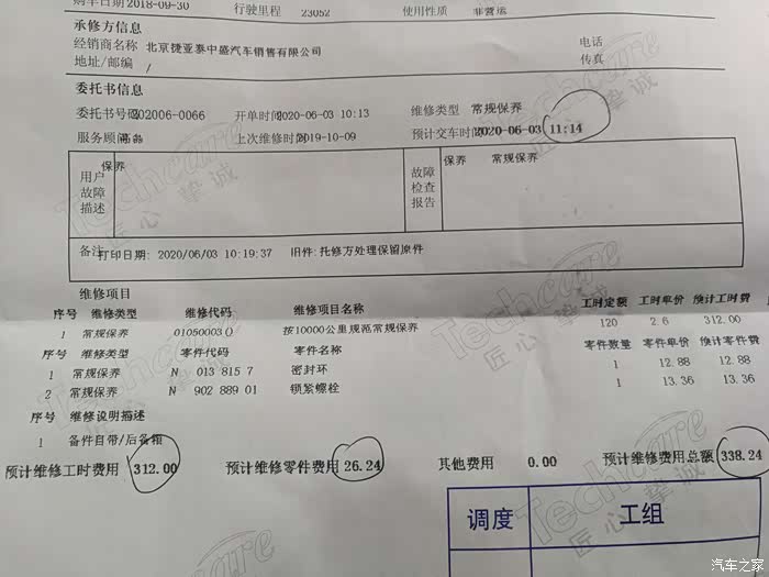 北京4S工时都这个价,房租人工高,两个师傅,两个半小时,还管饭,挣不了多少。买保险送的店内积分还有几百,够这次抵扣,不用花钱啦。又送了张200的复工工时代金劵,现金支付有效,也就是说下次保养工时312-200=112就可以了。没交钱还返劵,这可能是最省的一次保养。自带机油三滤,用买保险返的店内积分抵工时费,现金价值约6折,不到200元。看过外边换机油,加上换三滤人工也得小100,只换东西,不做检查,师傅手艺还得看运气,没4S细致规范,还有脱保扯皮的风险。4S推荐4次、6次保养套餐,均下来费用合适,省心。我想着自己搞配件、每年保险的积分抵工时也够了,就不需要买套餐。