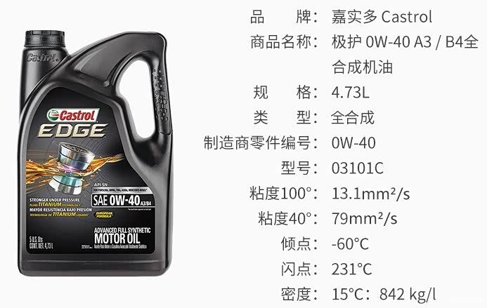 机油这次继续嘉实多,试试进口黑嘉0W40,低粘度40油,没啥特点的均衡油。