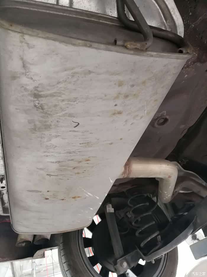 排气管下微微现出一点锈迹,后悬挂零件状态看上去还都挺好。