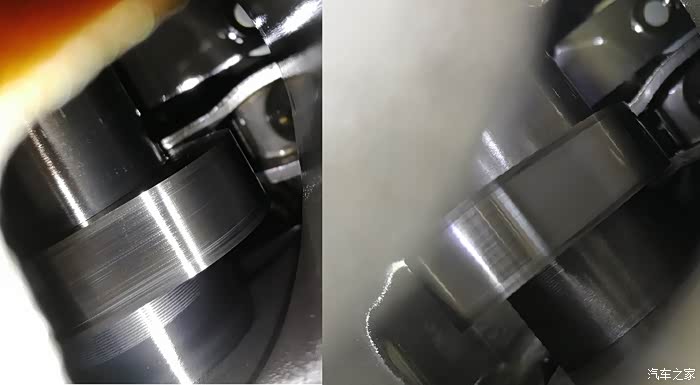 从机油口看发动机内部,确实很干净,没有油泥什么的,凸轮很亮。
