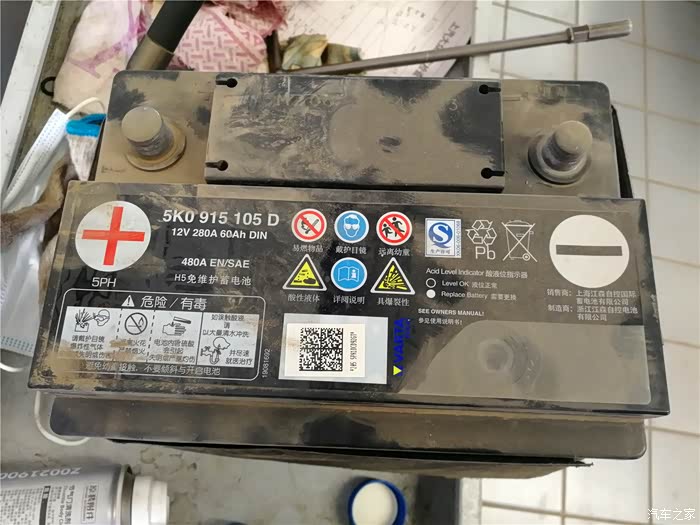 原车瓦尔塔电池已经取出来了。拍一张照留下型号,省的忘记了。