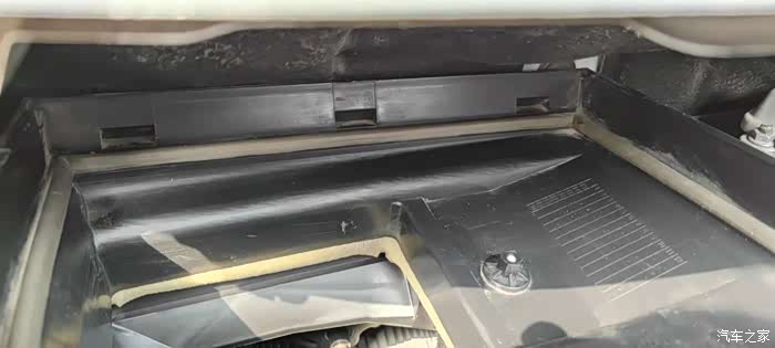 拉开挡水胶条的一侧,并把盖板向左拉动出卡口,然后直接拿起来就能看到里面的空调滤芯了。