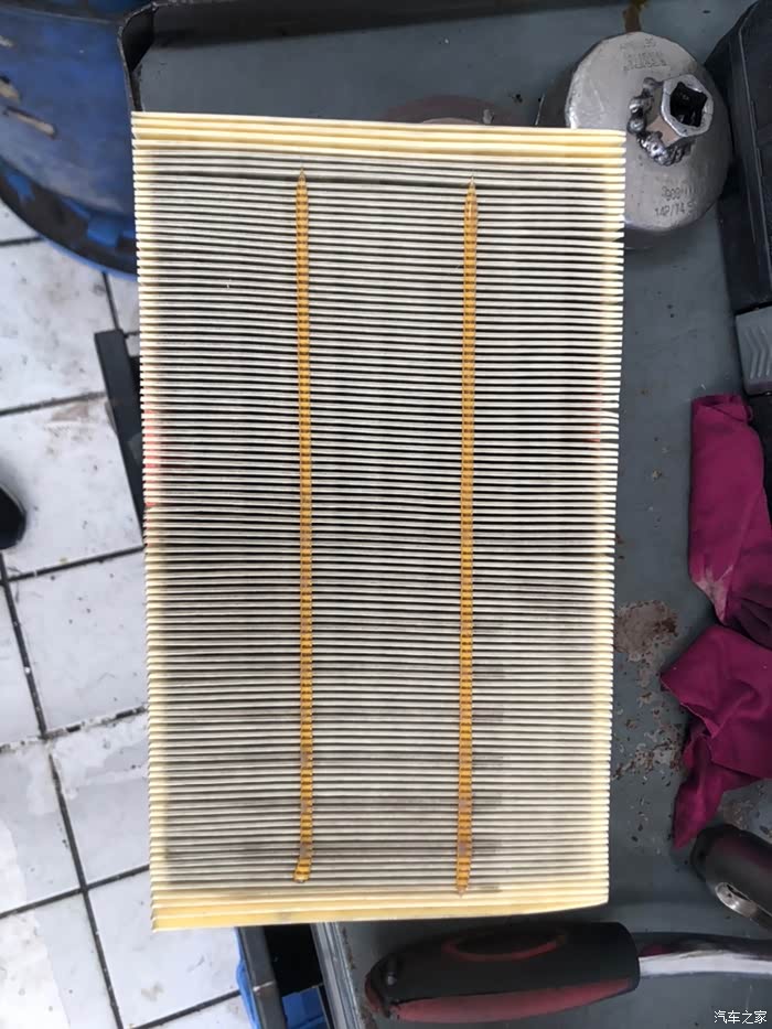 这个是更换下来的旧的空气滤芯可以看到中间很脏两边还是很干净的。