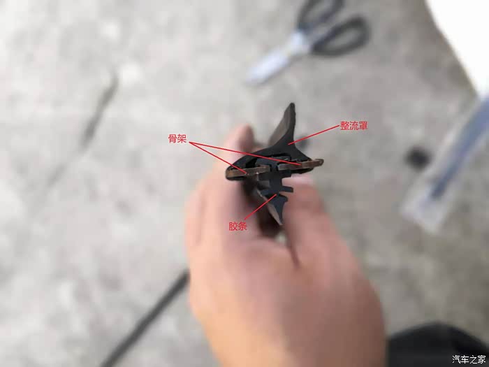 这是胶条的横截面,雨刮骨架就是卡在箭头所示的槽里