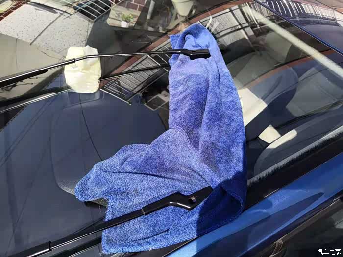 当心雨刮臂回弹砸碎挡风玻璃,用毛巾垫一下保护。