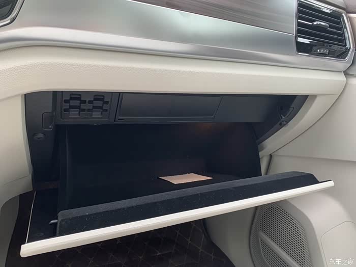 扶手箱带吹风功能,我没拍出来。但是这上面是什么鬼?作为一个途安L车主,我告诉你,这是CD机的位置。这设计师也太懒了吧?途昂的模具拿来用也就算了,车子的功能升级了,不需要CD了,也不去掉么?