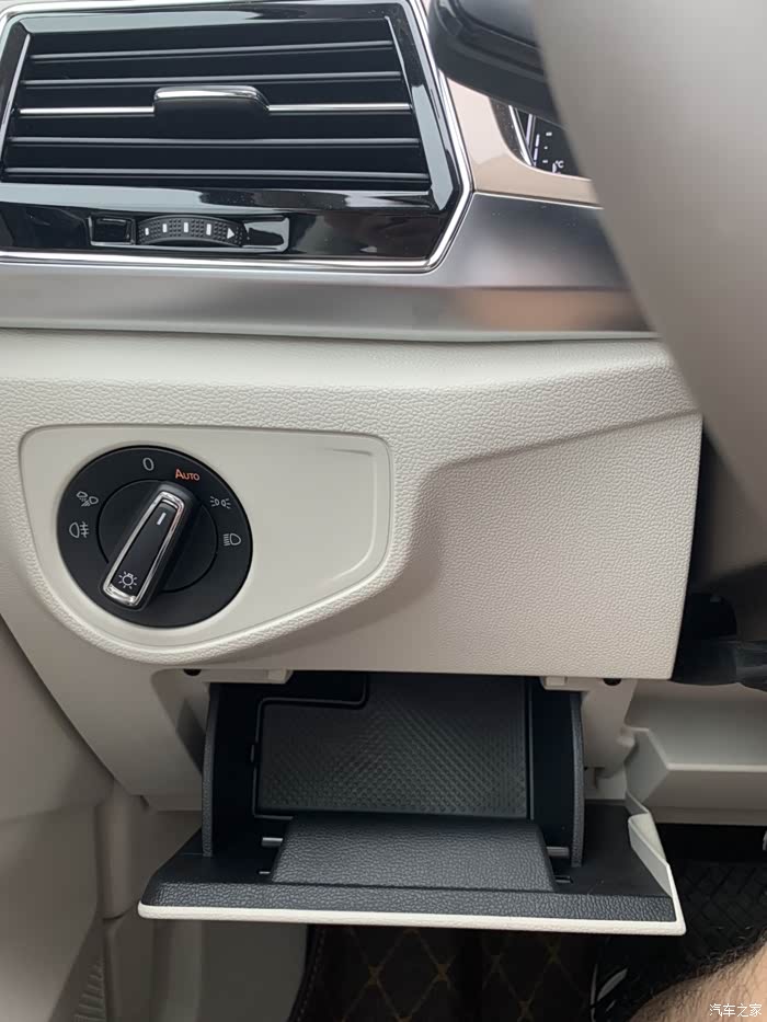 这个地方,和途昂一样,戴套的iPhoneXR横着放不进去,就差一点点,遗憾。但是放个行驶证啥的,没问题,足够大。