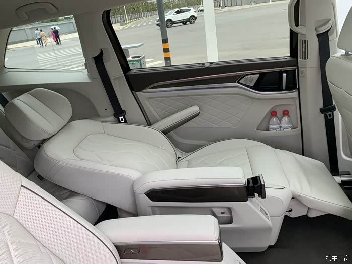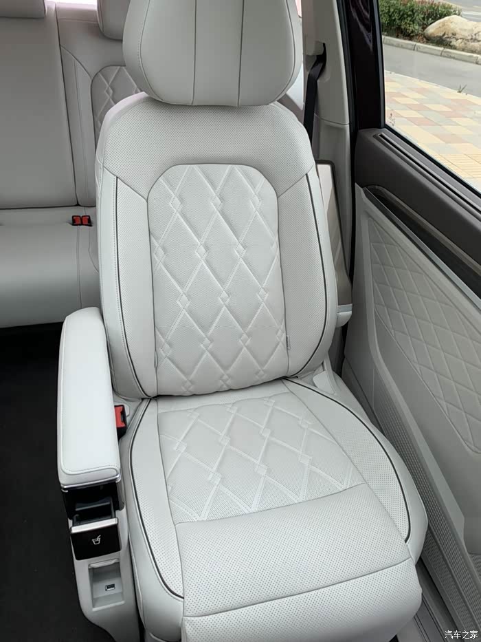 第二排座椅展示,航空头枕,按摩功能,看这打孔的皮子,应该也带座椅通风。看起来就有想坐上去的欲望,和按摩沙发一样。