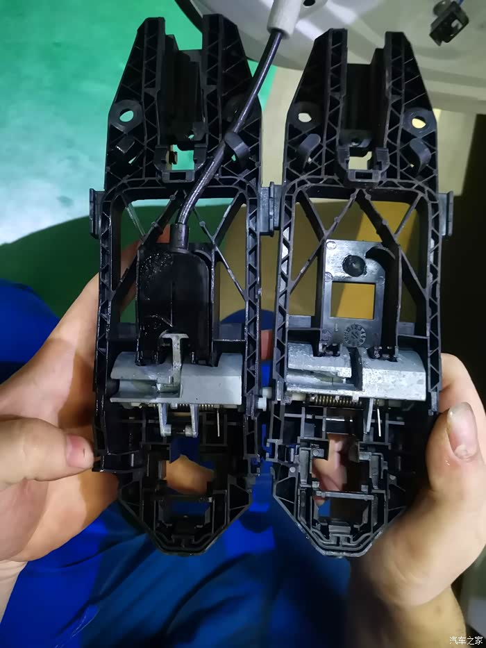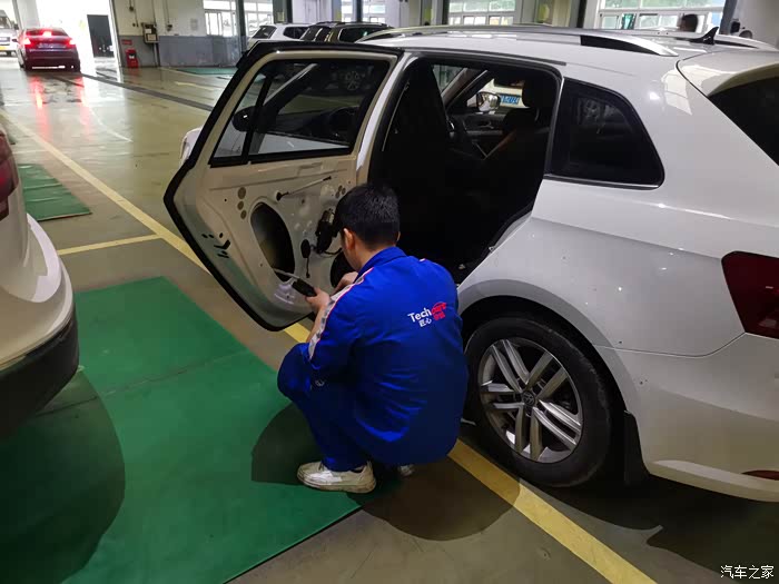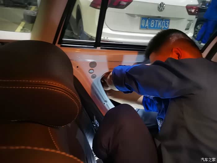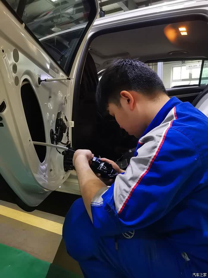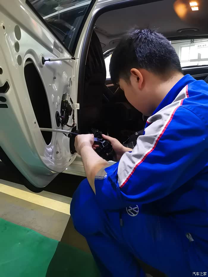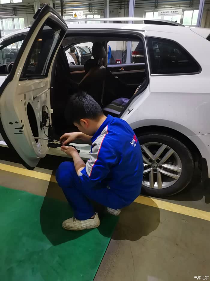 这个周六的时候就直接开过去店里,来维修保养的车真多,修理的过程中必须打开车边门框才能查看到问题,必须要从车里拆板,然后把门内拉手和扣线断掉。先把门打开,这样就容易查出问题,师傅说是把手底座板坏了,里面有个断了。需要更换,哪就肯定换啦,经过师傅九牛二虎之力,以及专业的技术,轻轻松松的解决更改车门把手底座,换了之后就解决车门开关问题。