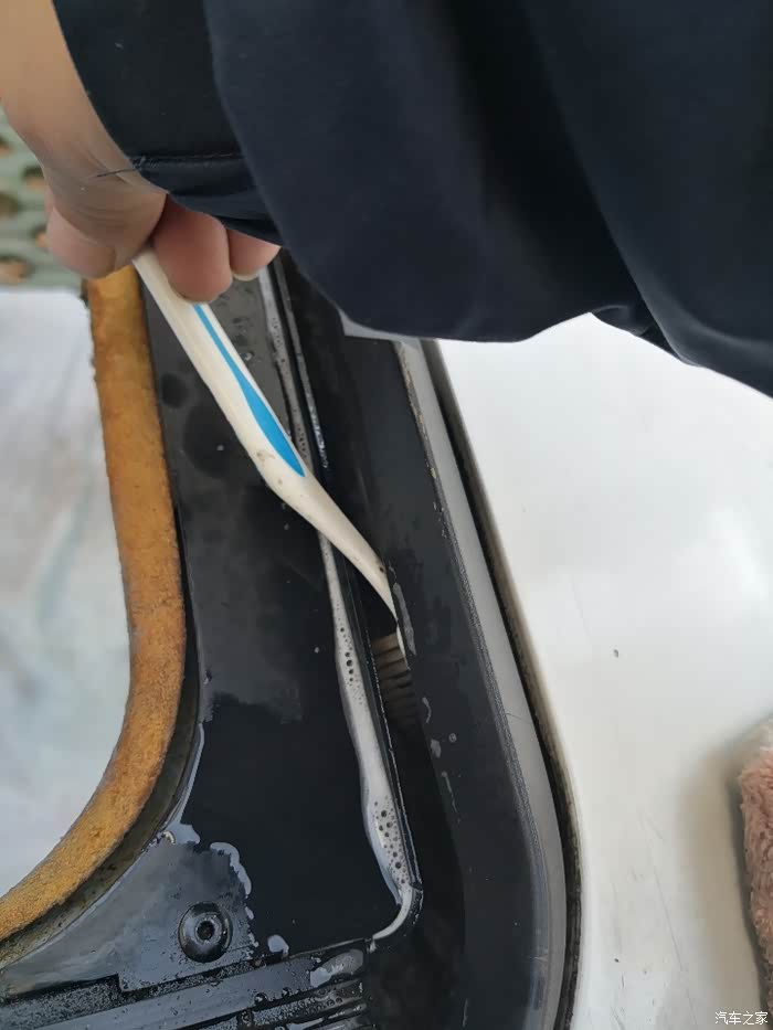 手够不到的地方牙刷上,顶棚还没有包布,因为非常时期买不到啊